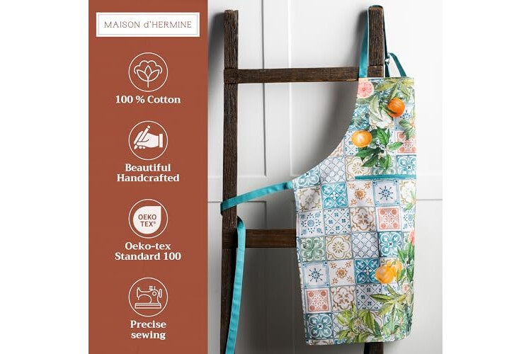 Maison d' Hermine 100% Cotton Apron for women with Pocket Kitchen Chef Apron for Men Cooking Gardening Server Waitress