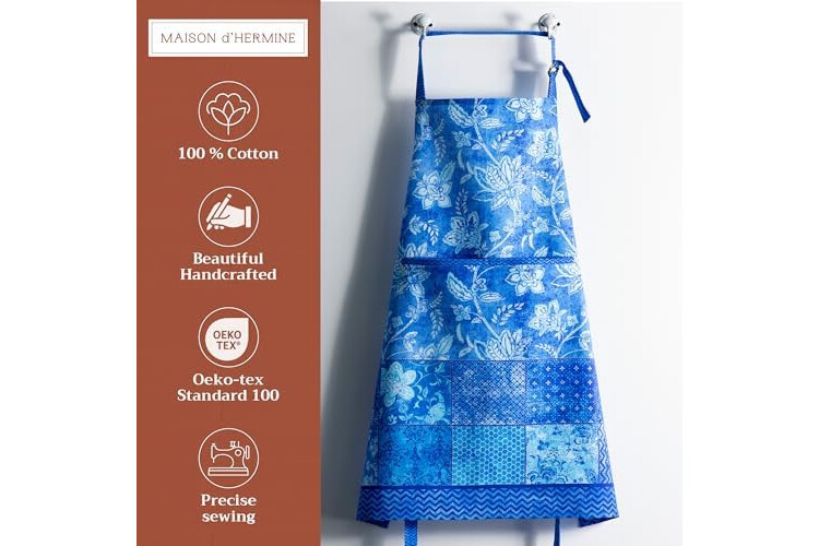 Maison d' Hermine 100% Cotton Apron for women with Pocket Kitchen Chef Apron for Men Cooking Gardening Server Waitress