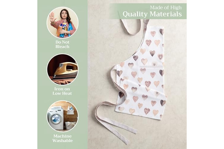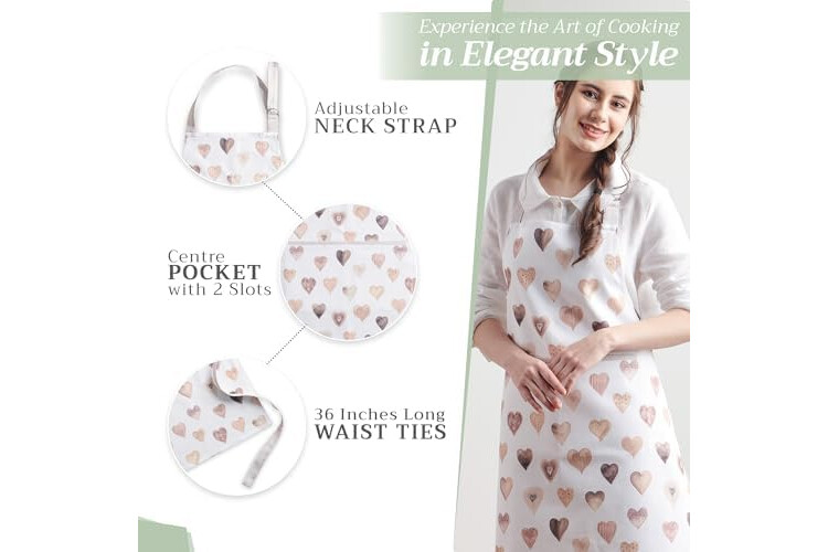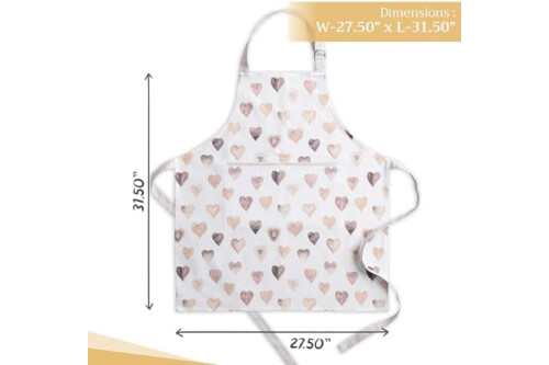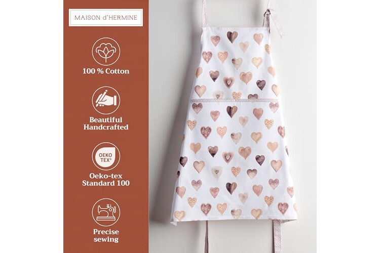 Maison d' Hermine Apron for women with Pocket 100% Cotton 27.50"x31.50" 1 Piece Adjustable Neck Strap & long ties Apron Men, Chef, Wedding, Cooking, Gardening, Server Spring/Summer (Lovely Hearts)