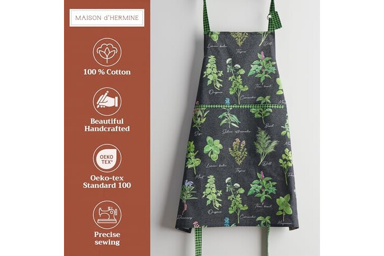 Maison d' Hermine 100% Cotton Apron for women with Pocket Kitchen Chef Apron for Men Cooking Gardening Server Waitress
