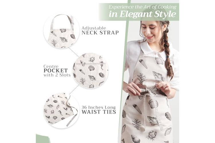 Maison d' Hermine 100% Cotton Apron for women with Pocket Kitchen Chef Apron for Men Cooking Gardening Server Waitress
