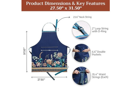 Maison d' Hermine 100% Cotton Apron for women with Pocket Kitchen Chef Apron for Men Cooking Gardening Server Waitress