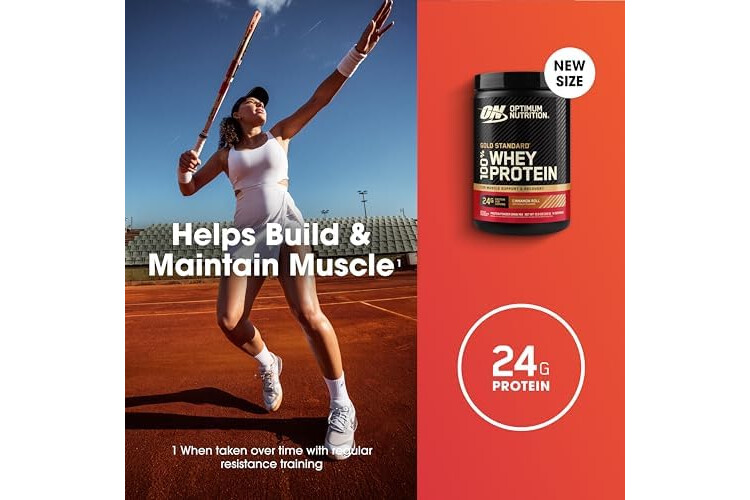 Whey Protein Isolate primary source- Gold Standard 100% Whey has 24g of protein per scoop to help build and maintain muscle when taken over time with regular resistance training.