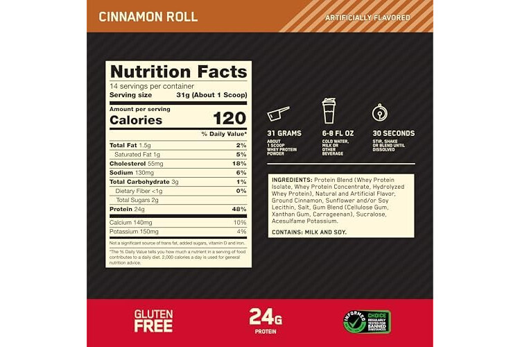 Optimum Nutrition Gold Standard 100% Whey Protein Powder, Cinnamon Roll, 1 Pound (Pack of 1)