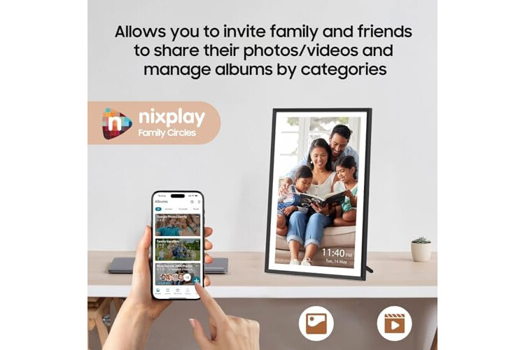 Setup is As Easy As 1-2-3 - With the Nixplay app (available for Android and iOS), you can invite multiple users to upload photos to the frame. You can even connect multiple digital picture frames to the app to share precious moments across devices. Nixplay also supports logging in via the desktop web app or emailing photos directly to the frame. With this digital picture frame, you can keep a rotating collection of photos and videos going all day long!