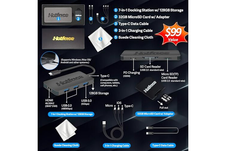 【4GB DDR4 RAM】Effortless multitasking capability allows you to work smoothly and efficiently across multiple applications without slowdowns.【288GB Storage】128GB SSD + 160GB Docking Station Set. Experience rapid, high-capacity storage designed to hold your massive assortment of documents, software, and entertainment files.