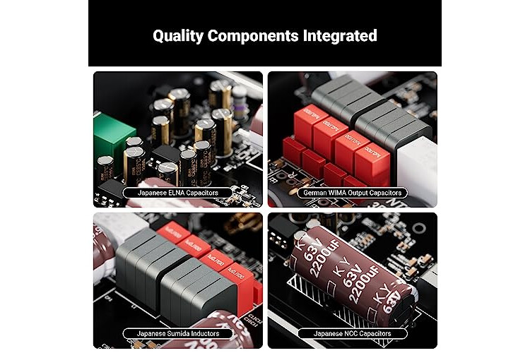 Audiophile-Grade Components: It features the TPA3255 high-end digital class D amp chip and utilizes premium Japanese NCC, ELNA, and German WIMA capacitors, and Japanese Sumida inductors for exceptional audio quality. With a SINAD rating of up to 88dB, an SNR of up to 110dB, and a low noise floor of only 140uV, it delivers exceptional clarity and low distortion