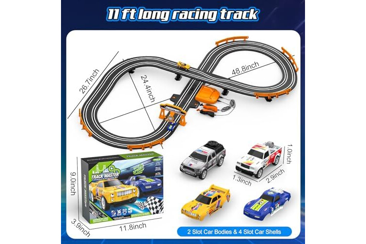 Easy to Install Long Car Track: a better system to lock into place and easy to put together; the race car track is 11 ft, which is long enough for kids to enjoy fast and furious; it is not only a toy, but also a tool to cultivate your child's interest