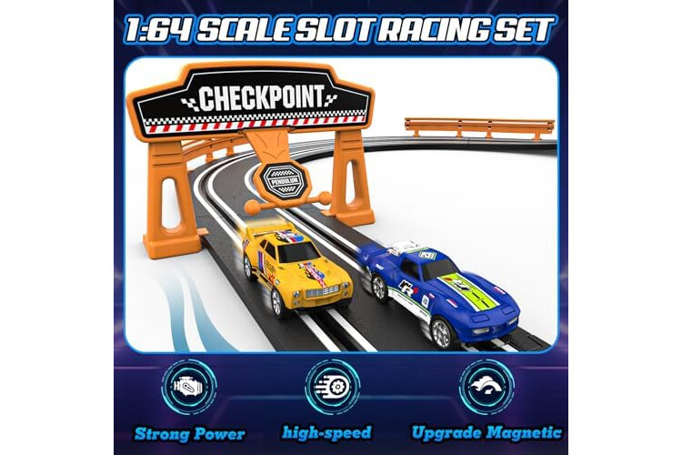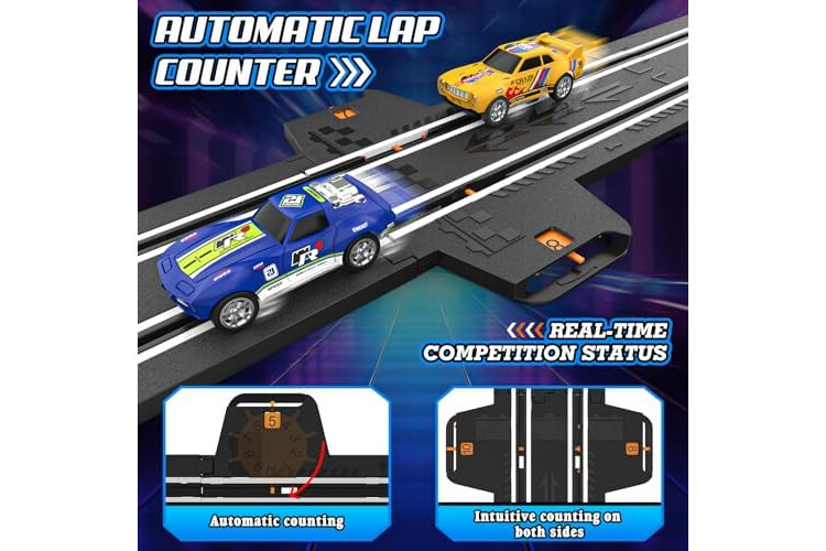 High-Speed Thrilling Racing Game: 1:64 scale electric racing tracks can reach a speed 300-370 mph on the electric track, you can fully feel power and speed; the race track has an automatic lap counting function, which records race situation in real time