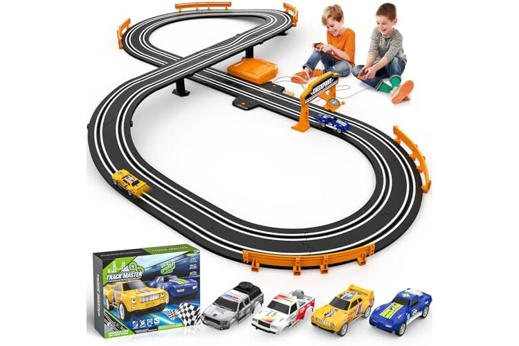 Slot Car Race Track Sets for Boys, Race Car Track with 2 High-Speed Slot Cars, Battery or Electric Car Track, Dual Racing Game Lap Counter Track Sets, Toys Gifts for Boys Girls Ages 4 5 6 7 8-12