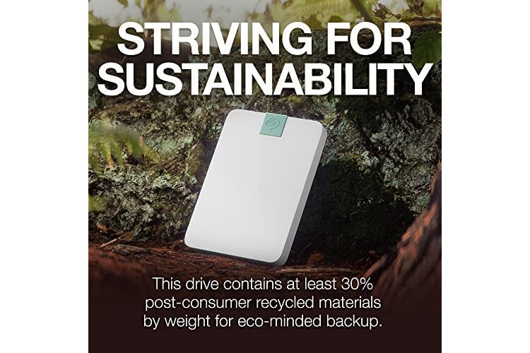 • STRIVING FOR SUSTAINABILITY This drive contains at least 30% post-consumer recycled materials by weight for eco-minded backup.