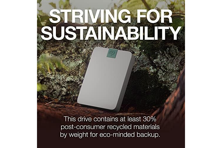 • STRIVING FOR SUSTAINABILITY This drive contains at least 30% post-consumer recycled materials by weight for eco-minded backup.