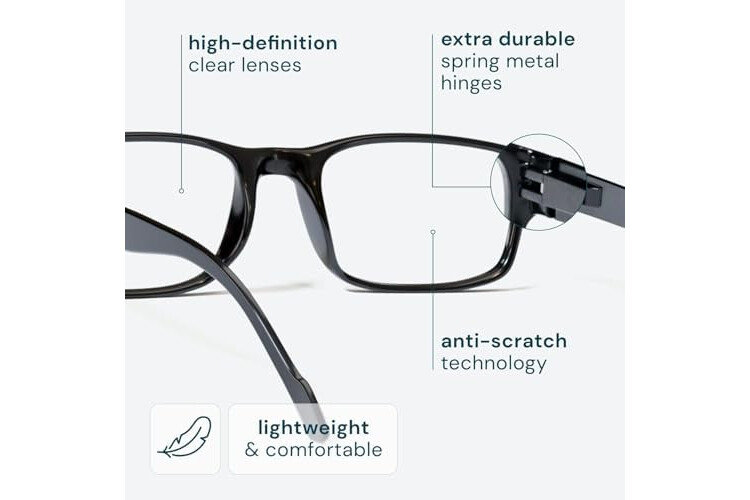 SPRING HINGES: Womens reading glasses also have features such as spring hinges that make them comfortable to wear for long periods of time