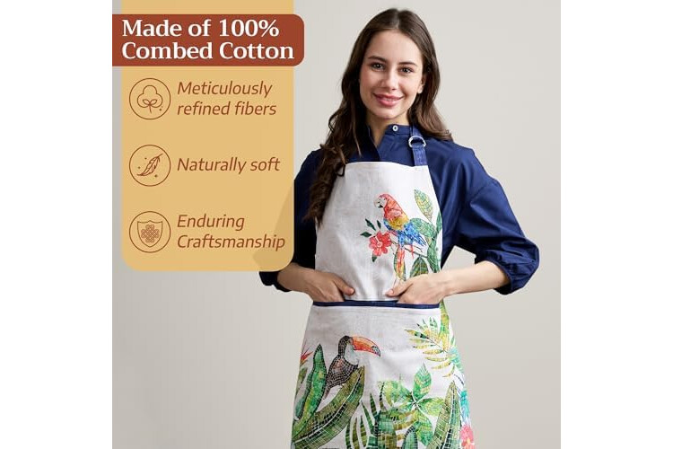 Maison d' Hermine 100% Cotton Apron for women with Pocket Kitchen Chef Apron for Men Cooking Gardening Server Waitress