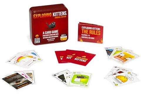 Exploding Kittens Original Edition in Collectible Tin - Fun & Hilarious Card Game for Kids and Adults, Ideal for Party Family Game Night and Party, 56 Cards Included