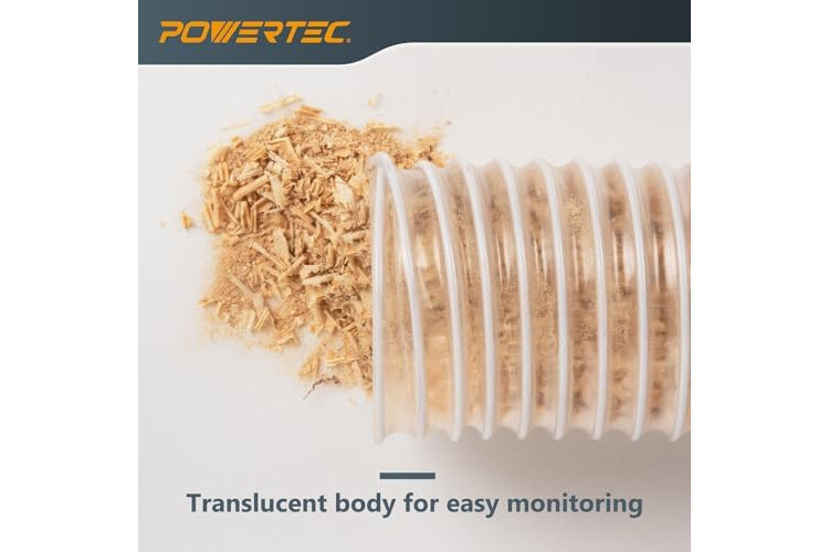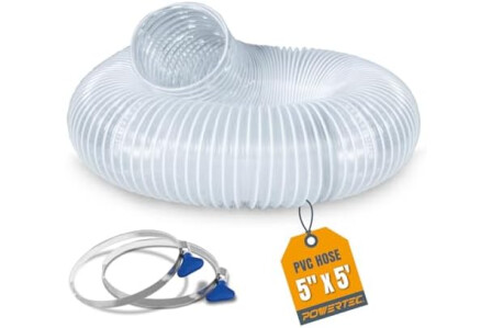 POWERTEC 5" x 5' PVC Flexible Dust Collection Hose with 2pcs Stainless Steel Key Hose Clamps for Woodworking and Garage, Wood Shop Dust Collection System, Planer, Cyclone Dust Separator (70394)