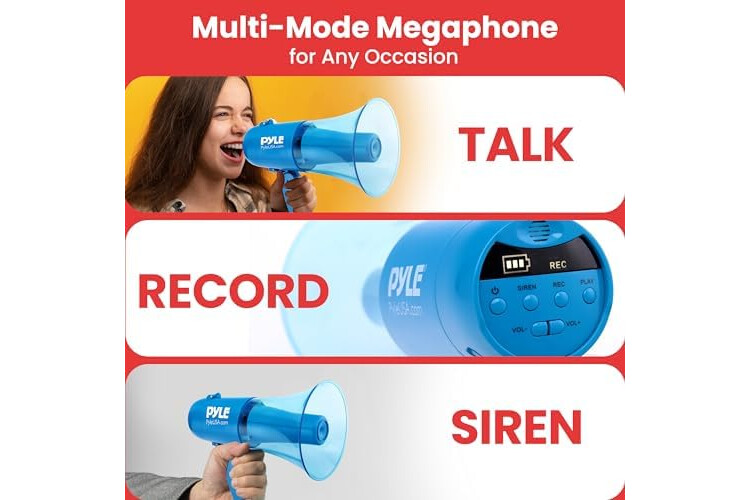 VERSATILE AND EASY TO USE - Features adjustable volume and tone controls, plus a plug-in handheld microphone for added convenience. Use as a megaphone, siren, or music player, with 240 seconds of record time for tailored communication.