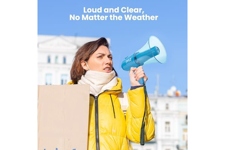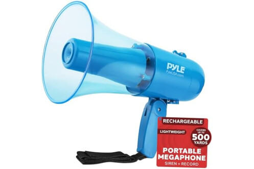 Pyle Portable Megaphone Speaker, 500-Yard Range, Lightweight Bullhorn with Siren, Rechargeable Battery, Handheld Mic, Adjustable Volume Control, Durable for Indoor/Outdoor Use, Transparent Blue