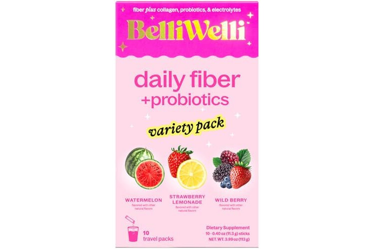 Belli Welli Daily Fiber Supplement Packets with Collagen, Probiotics & Electrolytes | Single Serve Packets for Gut Health, Digestion & Debloating | Variety | 10 Count