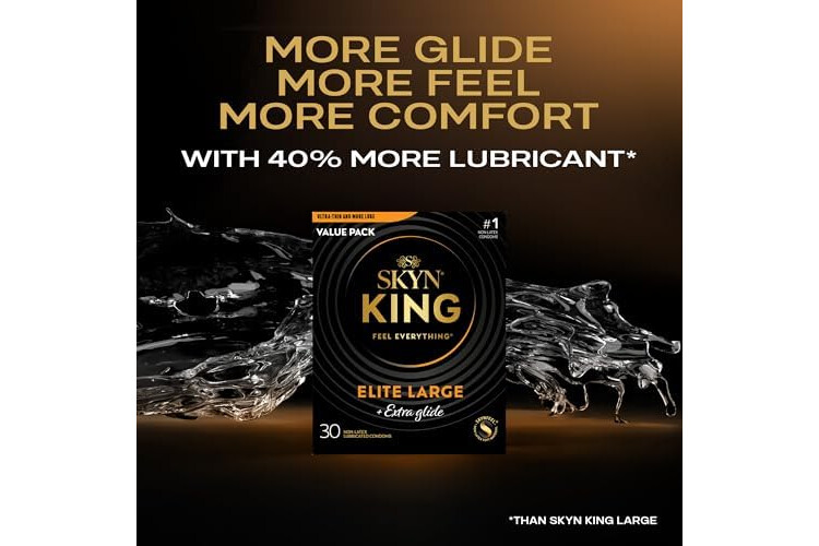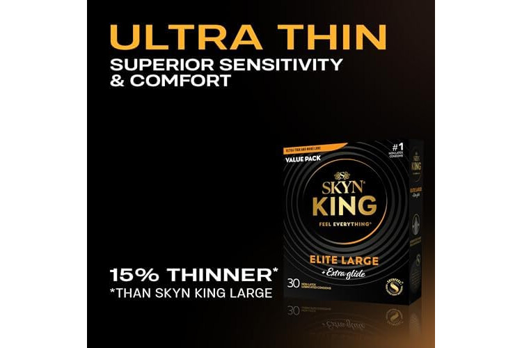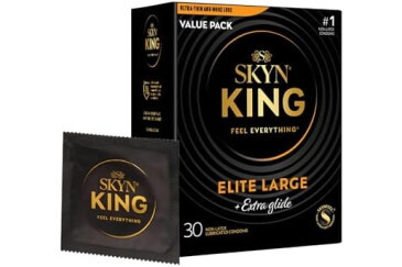 Made for Kings: Designed for a larger fit, SKYN King Elite Extra Glide large condoms give you the comfort, room, and confidence you deserve.