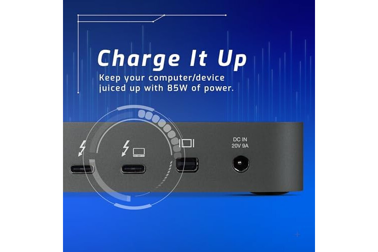 Power Delivery: Host Thunderbolt (USB Type-C) connection powers and charges notebook computers with up to 85W power; 2 High-Powered USB Type-A ports deliver 5Gb/s speed and up to 7.5W power to additional devices