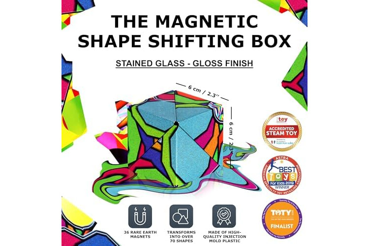 Shashibo Shape Shifting Box - Award-Winning STEM Fidget Toy with Ultra Strong Magnets - Puzzle Cube Transforms Into 100+ Shapes, Perfect Sensory Gift for Kids, Teens, and Adults (Stained Glass)