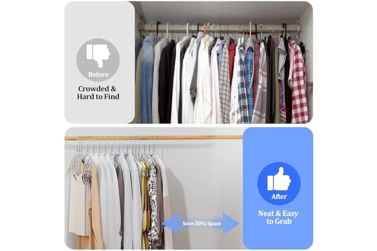 Space-Saving: Saves about 50% more space than traditional bulky hangers. Ideal for space-limited environments like dorm rooms and small apartments, easily solving closet overcrowding problems