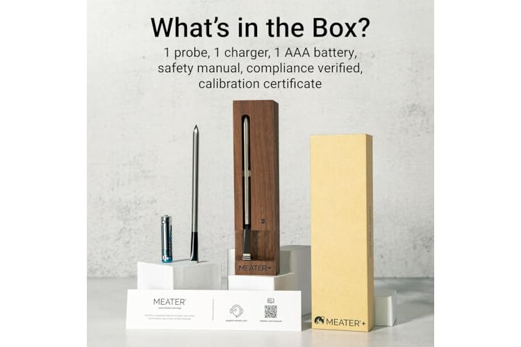 MEATER Plus: Smart Bluetooth Wireless Meat Thermometer Digital (Walnut) | BBQ, Grill, Oven, Smoker, Air Fryer, Kitchen | Perfect for Steak, Chicken, Turkey, and More | Delicious Recipes in App
