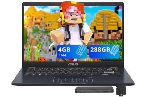 ASUS Vivobook Go 14" FHD Laptop, Intel Celeron N4500, 4GB DDR4 RAM, 288GB Storage(128GB eMMC + 160GB Docking Station Set), Intel UHD Graphics, Number Pad, Webcam, Wi-Fi 5, Win 11 S, Star Black