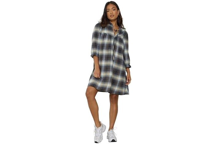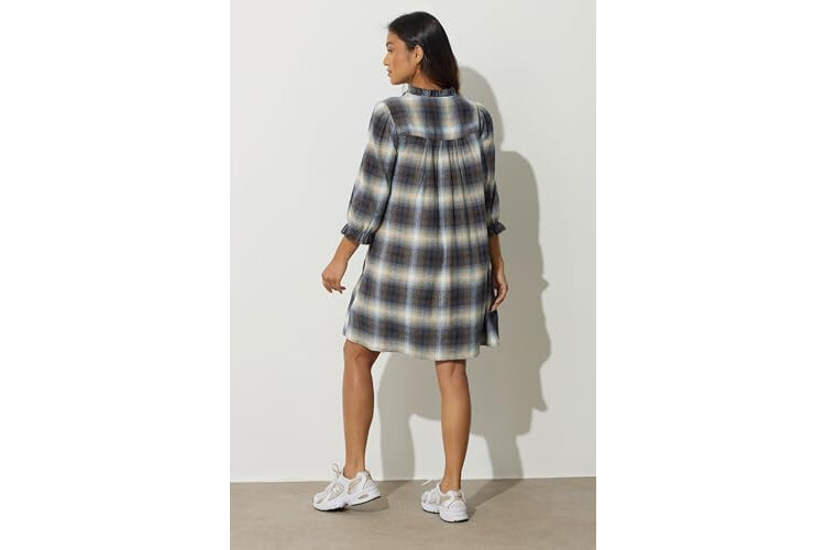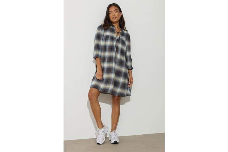 Petite Women's Brushed Check Tie Smock Dress Blue