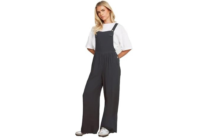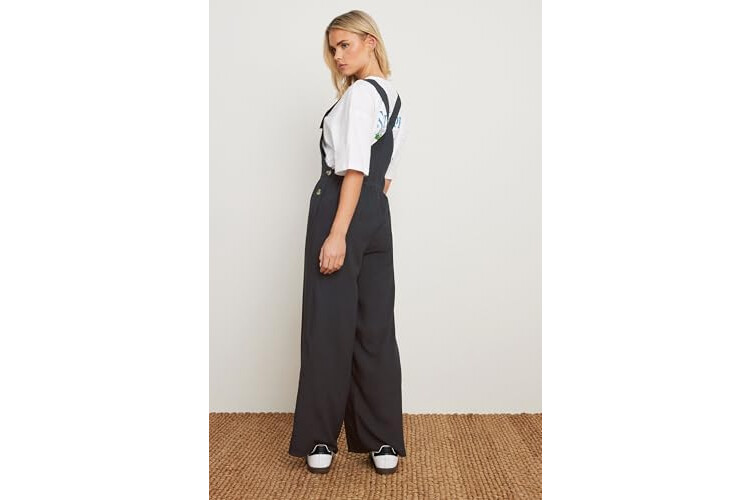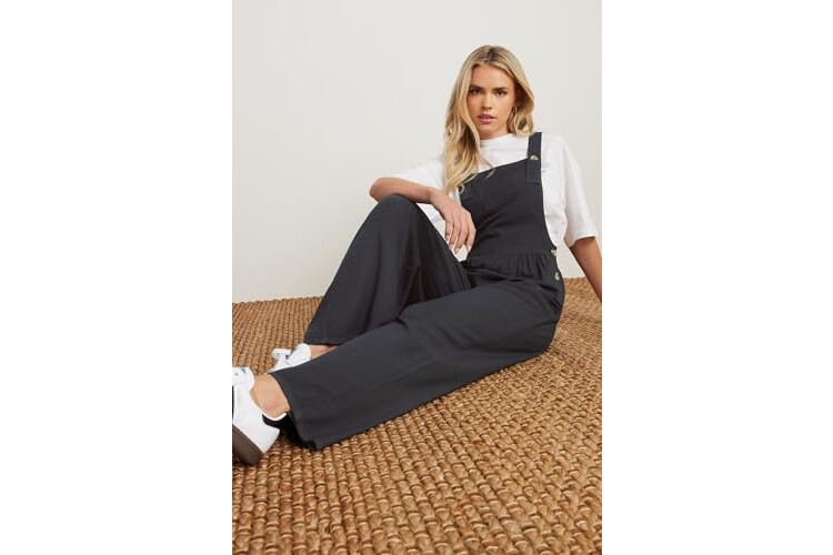 Petite Women's Acid Wash Wide Leg Overall Dungarees Jumpsuit Black