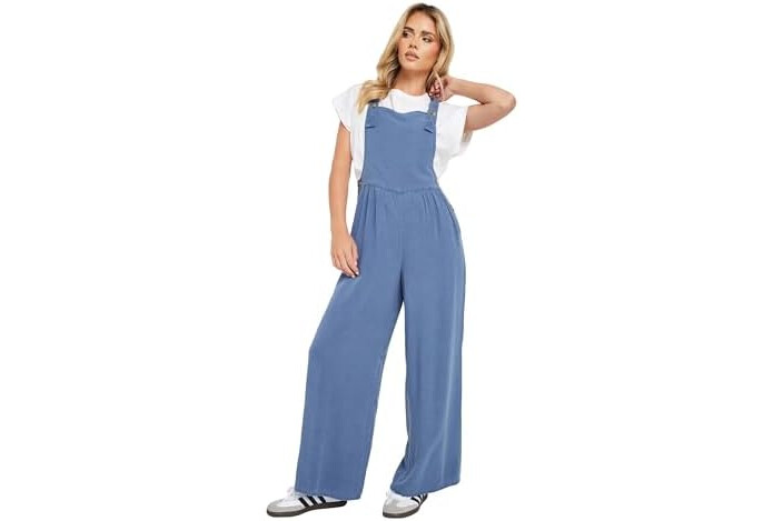 Petite Women's Acid Wash Wide Leg Overall Dungarees Jumpsuit Black