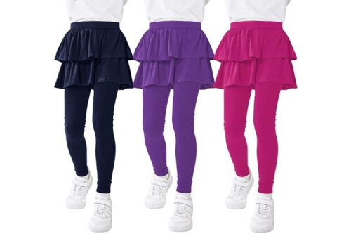 Resinta 3 Pack Girls School Uniform Pants Girls Leggings with Skirt Winter Warm Leggings 4-14 Years