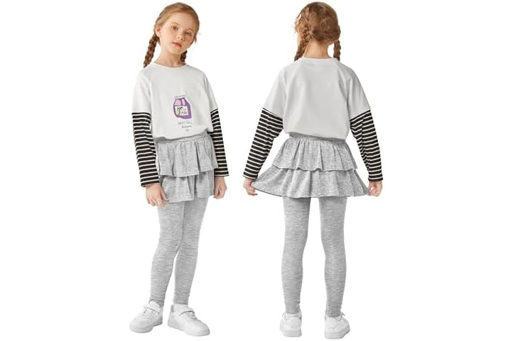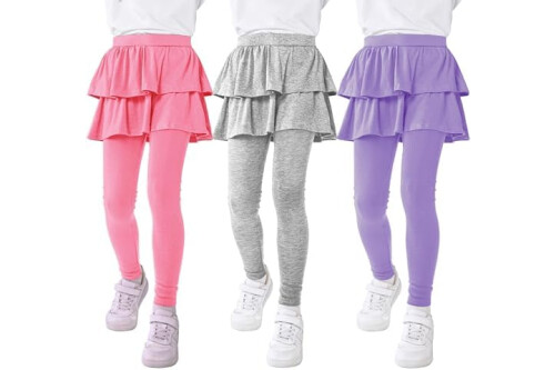 Resinta 3 Pack Girls School Uniform Pants Girls Leggings with Skirt Winter Warm Leggings 4-14 Years