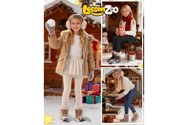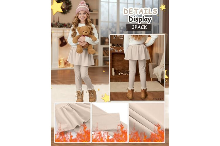 3 Pack Girls Fleece School Uniform Pants Leggings with Ruffle Skirt Kids Thermal Footless Stretch Pants 5-14 Years