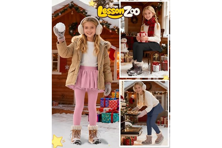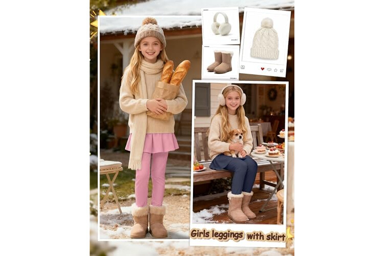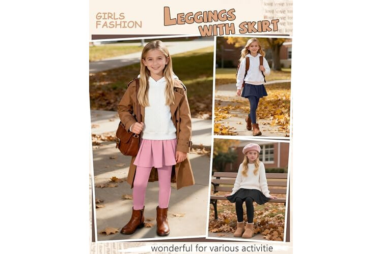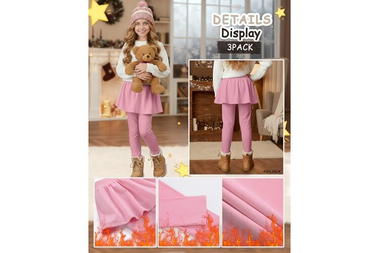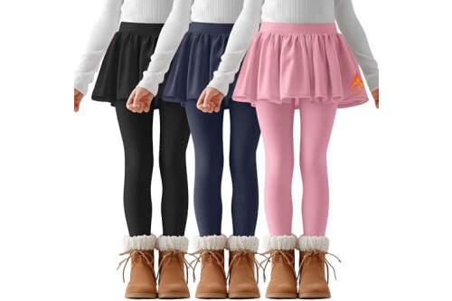 3 Pack Girls Fleece School Uniform Pants Leggings with Ruffle Skirt Kids Thermal Footless Stretch Pants 5-14 Years