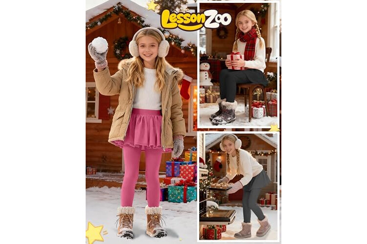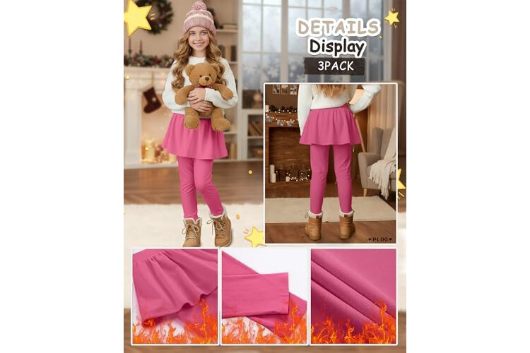 3 Pack Girls Fleece School Uniform Pants Leggings with Ruffle Skirt Kids Thermal Footless Stretch Pants 5-14 Years