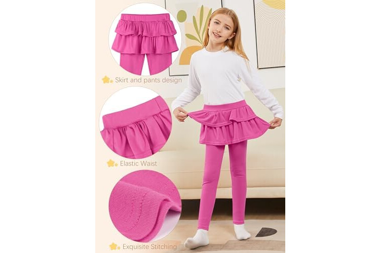 Girls Leggings with Skirt for Girls Kids School Uniform Pants Toddler Ruffle Pants Tutu Pull On Warm Clothes