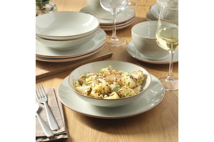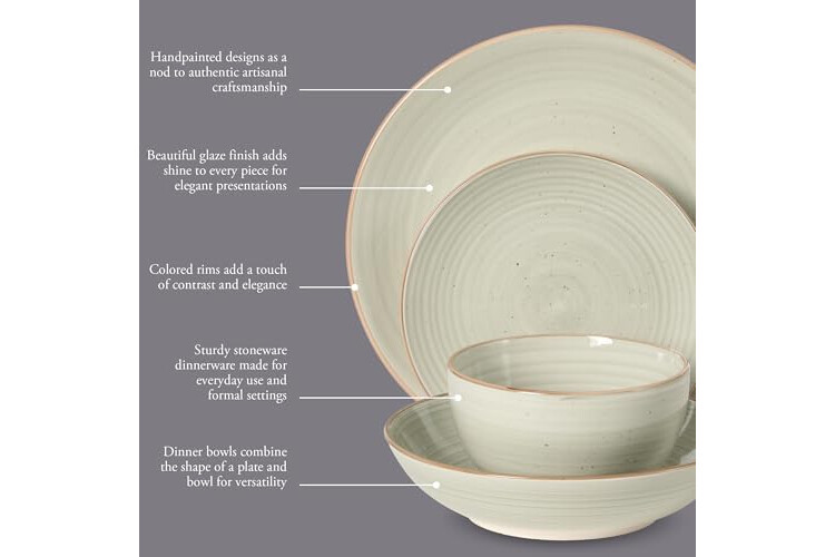 EASY-TO-CLEAN DINNERWARE: Made from durable stoneware, these plates and bowls are elevated dining essentials that are best in versatility and effortless cleanup. Fired at high temperature for a wear-resistant and non-porous construction, these heavy stoneware pieces provide a sturdy look and feel for everyday use.