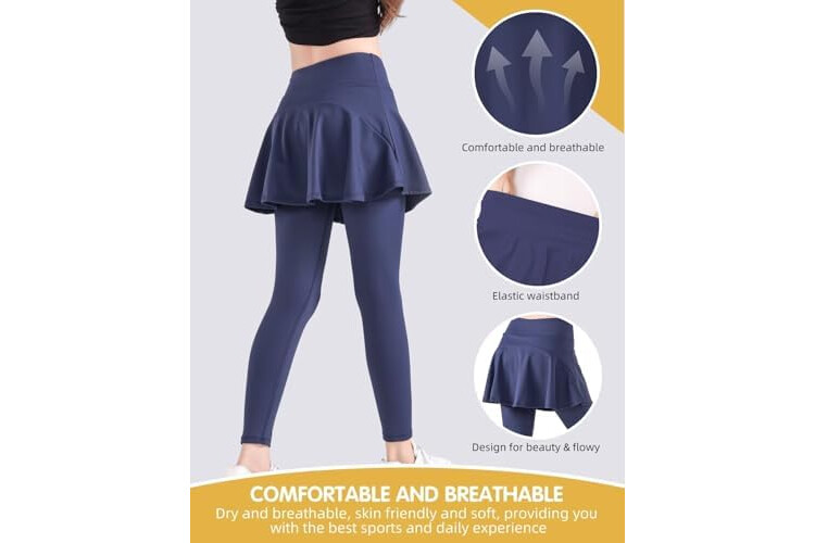 2 in 1 Girls Leggings with Skirt High Waisted Tennis Athletic Flowy Skirted Legging with Pockets for Kid