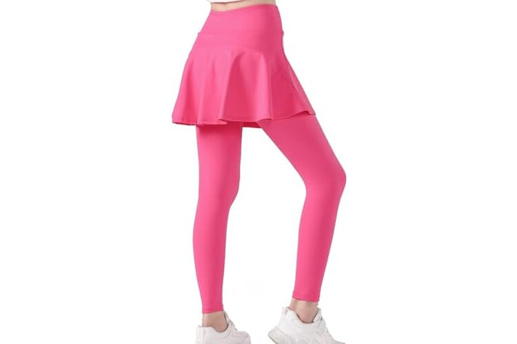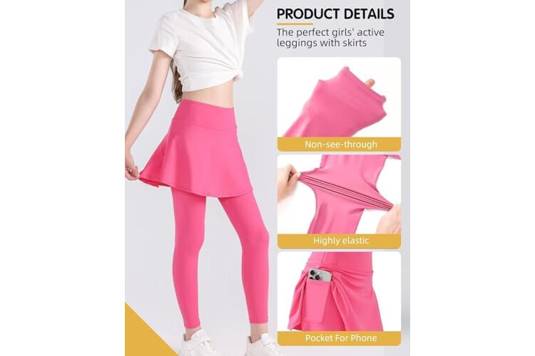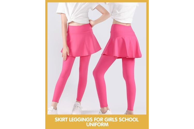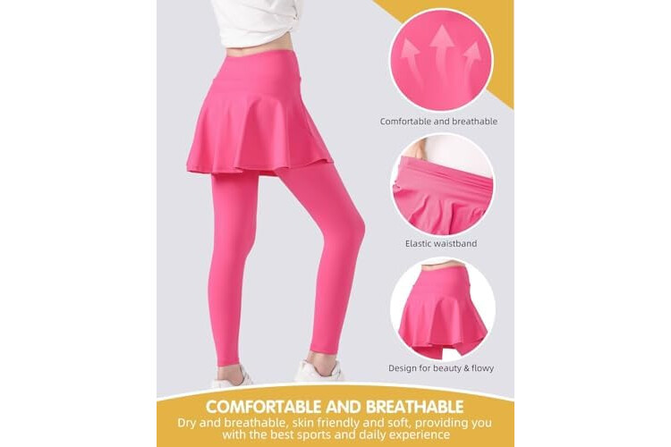2 in 1 Girls Leggings with Skirt High Waisted Tennis Athletic Flowy Skirted Legging with Pockets for Kid