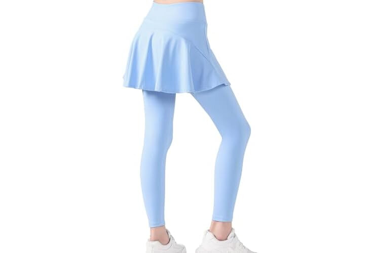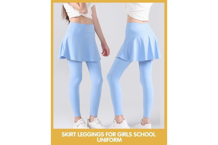 2 in 1 Girls Leggings with Skirt High Waisted Tennis Athletic Flowy Skirted Legging with Pockets for Kid