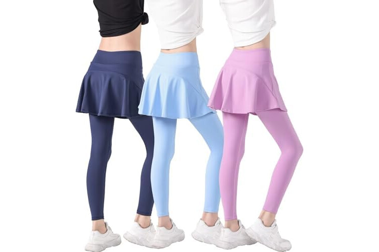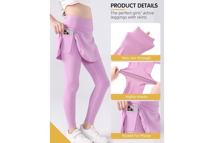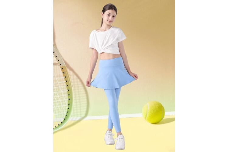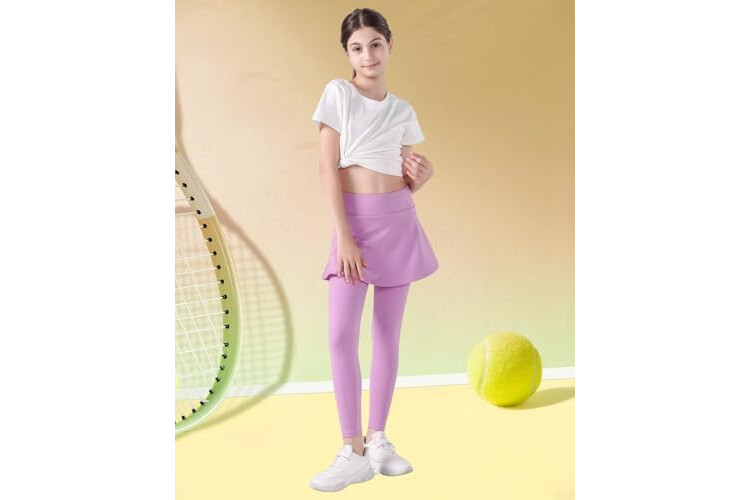 2 in 1 Girls Leggings with Skirt High Waisted Tennis Athletic Flowy Skirted Legging with Pockets for Kid