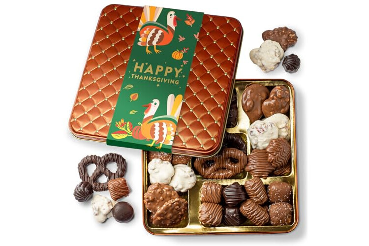 GOURMET ASSORTMENT FOR EVERY PALATE – This premium chocolate gift box features a decadent mix of milk, dark, and white chocolate pieces, truffles, and pralines, making it a delicious Thanksgiving treat to share and savor after the holiday feast.