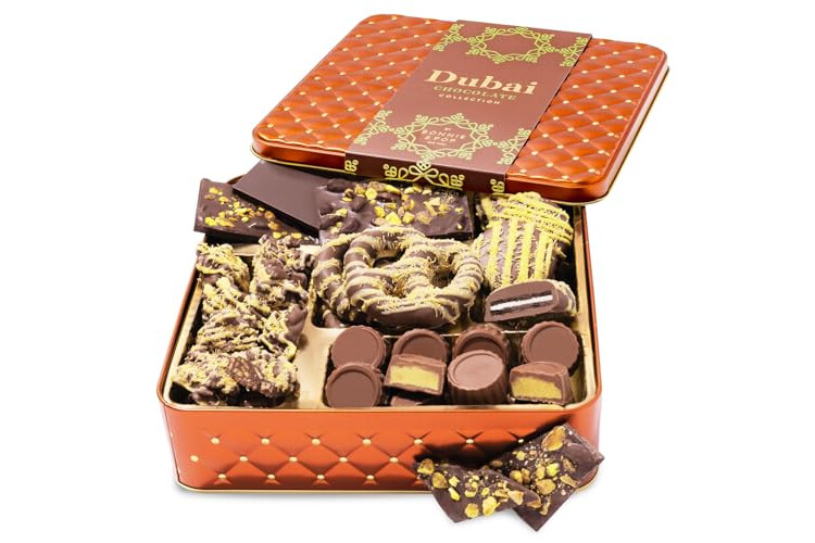 Premium Contents: Delectable assortment includes Dubai-inspired chocolate treats, perfect for sophisticated gifting and special occasions.