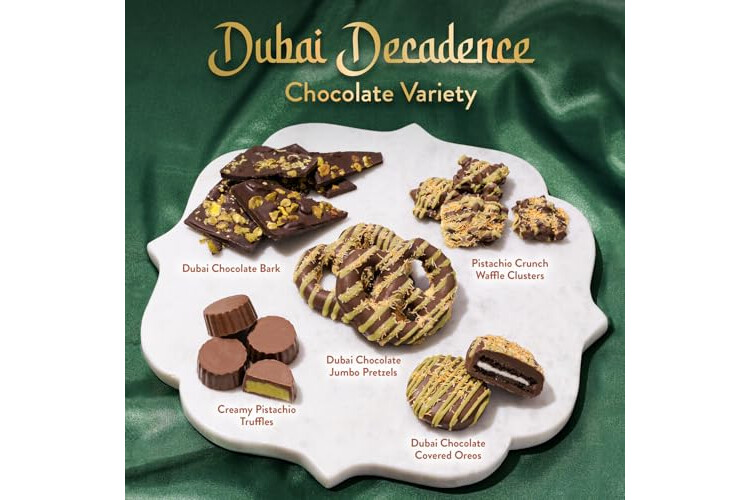 Dubai Chocolate Gift Basket– Christmas Holiday Pistachio Trend Candy Assortment Gift Box– Food Present Idea for Men, Women, Corporate- Bonnie & Pop