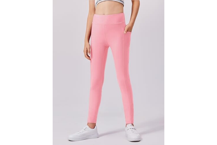 Zaclotre Girls Fleece Lined Leggings Warm Winter Running Tights for Kids High Waist Athletic Yoga Pants with Pockets
