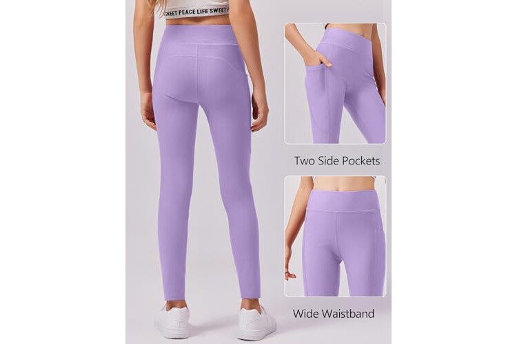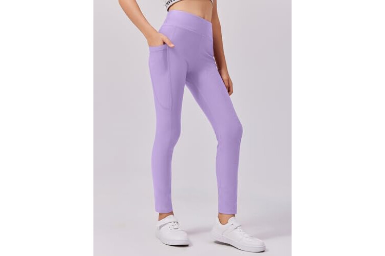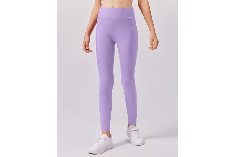Zaclotre Girls Fleece Lined Leggings Warm Winter Running Tights for Kids High Waist Athletic Yoga Pants with Pockets