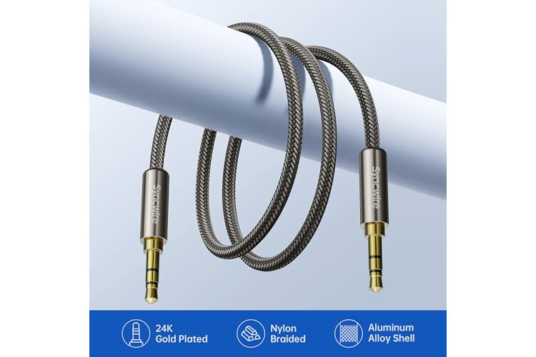 SYNCWIRE 3.5mm Nylon Braided Aux Cable (6.6ft/2m,Hi-Fi Sound), Audio Auxiliary Input Adapter Male to Male Cord for Headphones, Car, Home Stereos, Speaker, iPhone, iPad, iPod, Echo & More – Gold Brown