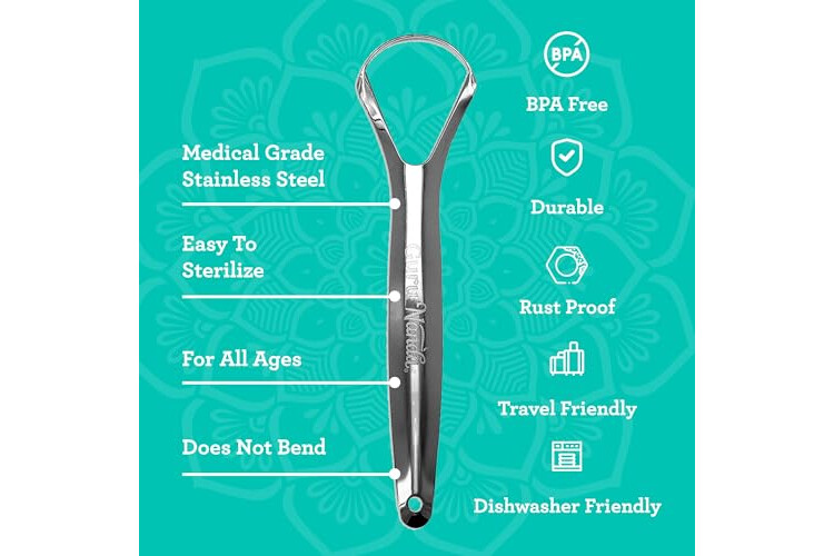 HELPS PREVENT BAD BREATH: Scraping your tongue twice a day is the best way to prevent bad breath. The GuruNanda Metal Tongue Scraper removes layers of gunk, promoting fresh breath & a confident smile